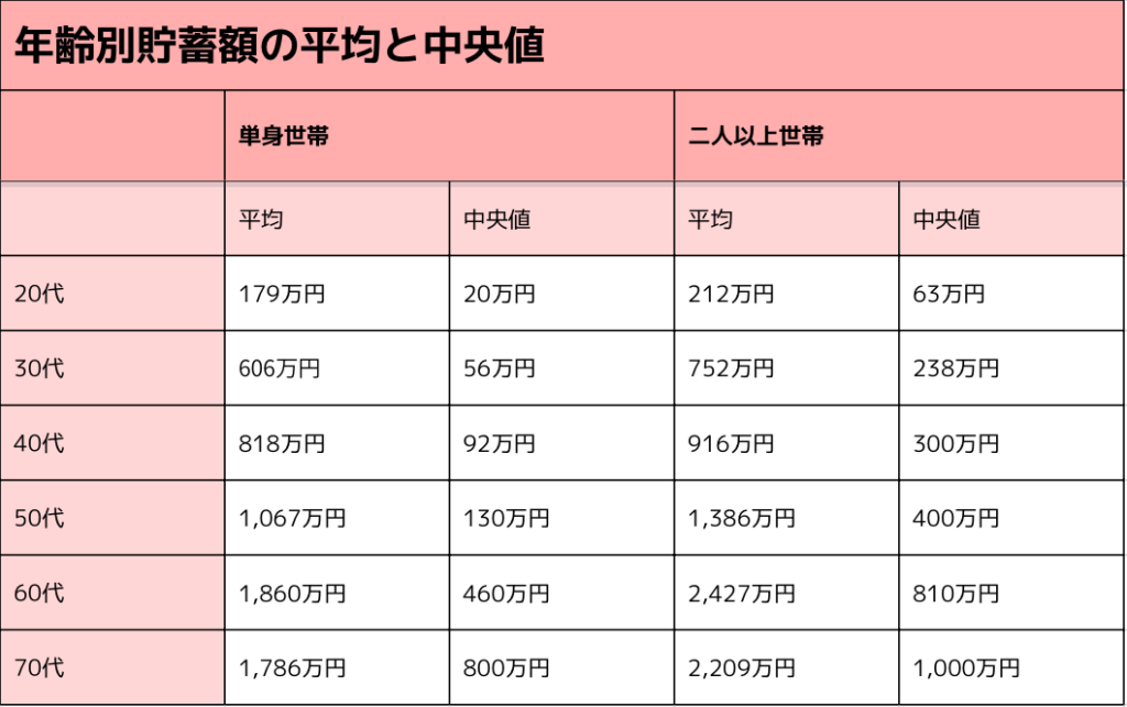 平均は、貯金額が多い人がいると全体の数字が引き上げられてしまうため、